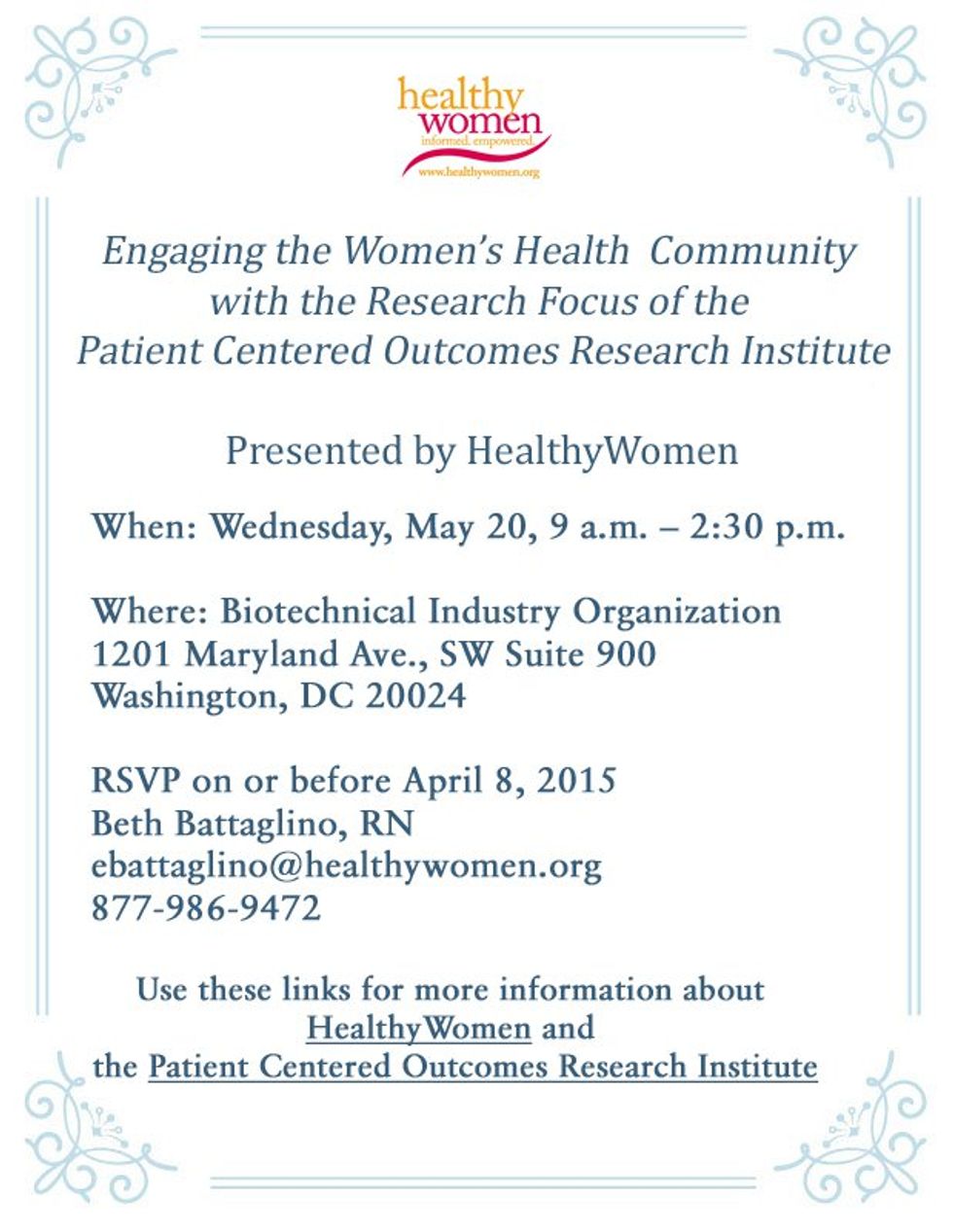 Engaging the Women's Health Community in PCORI's Women's Health Research Focus, May 20, 2015