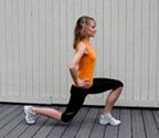 - Keep back heel lifted off the ground; bend both knees.