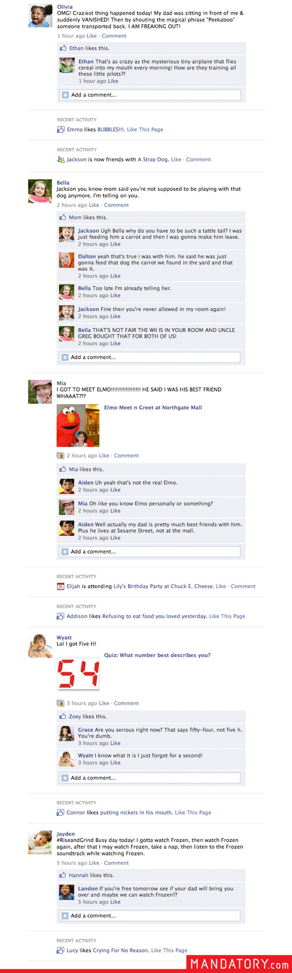 If our Facebook feeds were run solely by tots, it would look something like this: