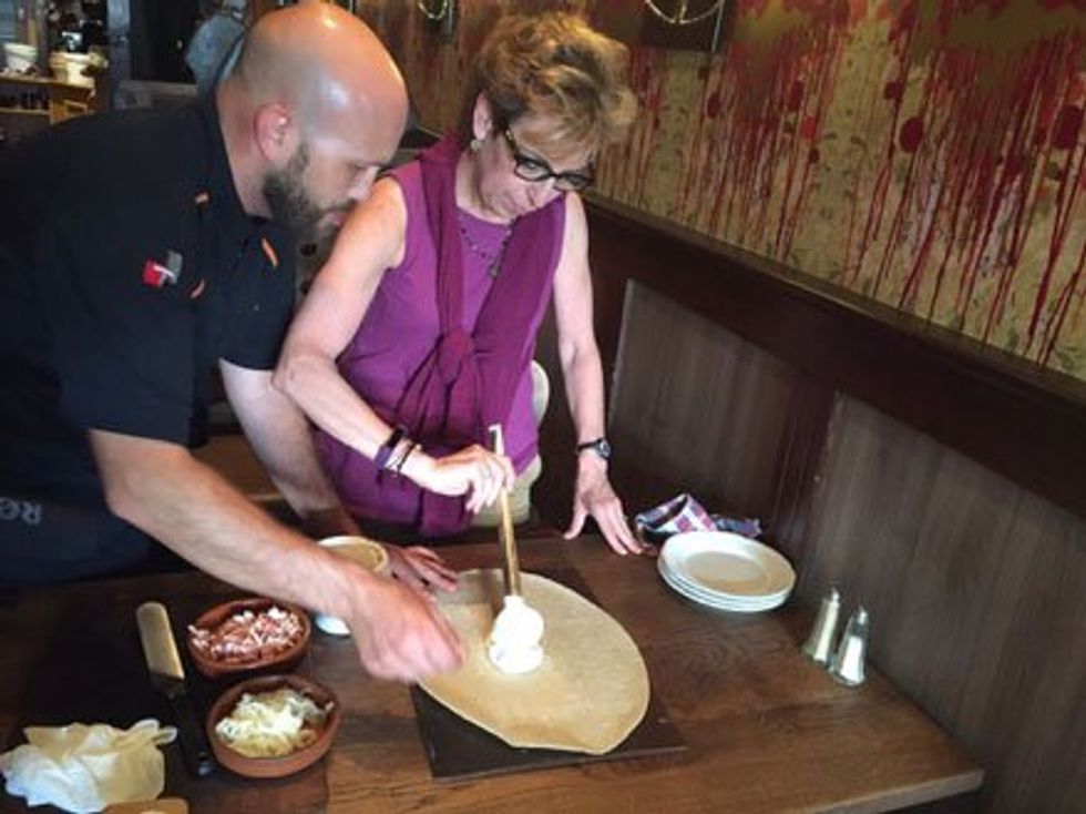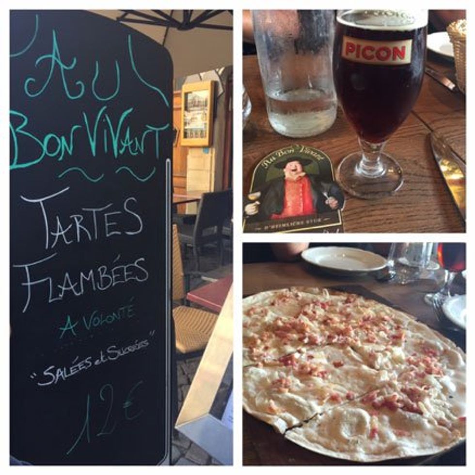 Our afternoon walk took us to Au Bon Vivant Cafe where we dined on escargot, drank Picon (beer mixed with brandy) and helped Chef Michel make a Tarte Flambe. Bon Vivant means to enjoy life, and I was definitely enjoying this special day.