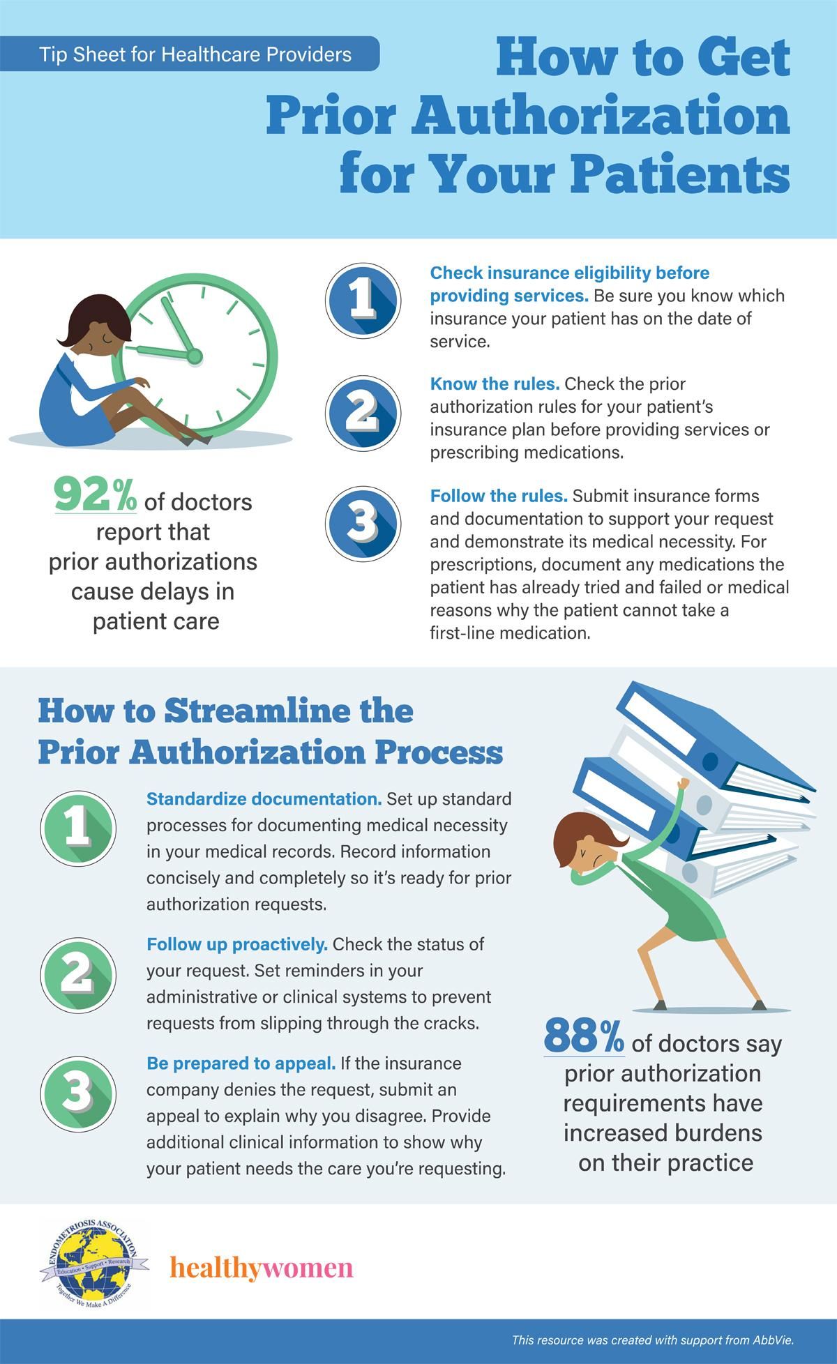 Source: American Medical Association. “Tips to help physicians reduce the prior authorization burden in their practice.”