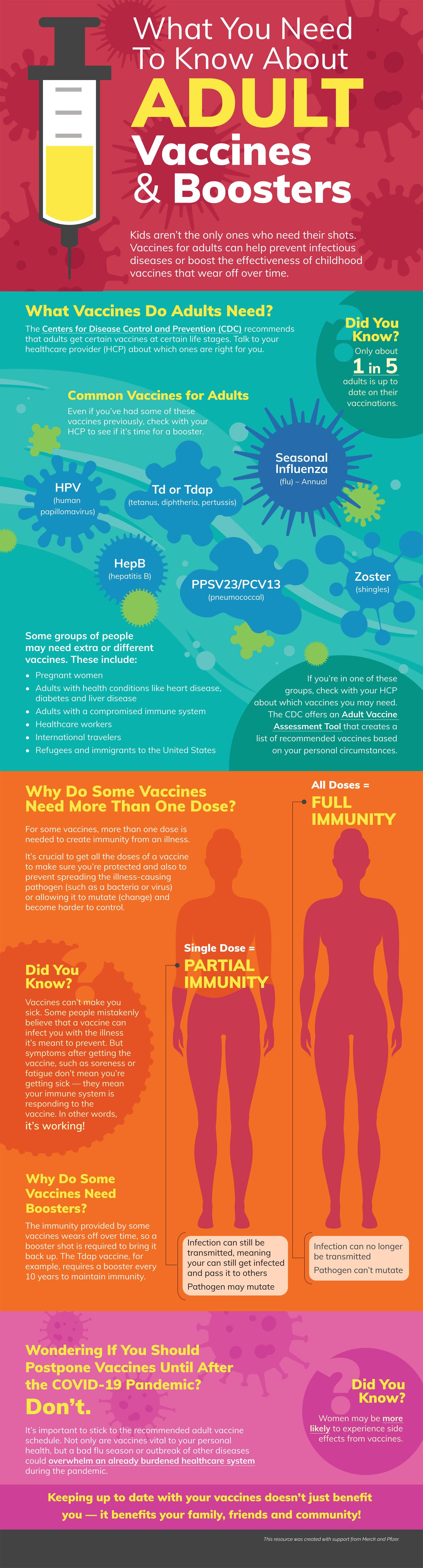 Kids aren’t the only ones who need shots. Vaccines for adults can help prevent infectious diseases or boost the effectiveness of childhood vaccines that wear off over time.