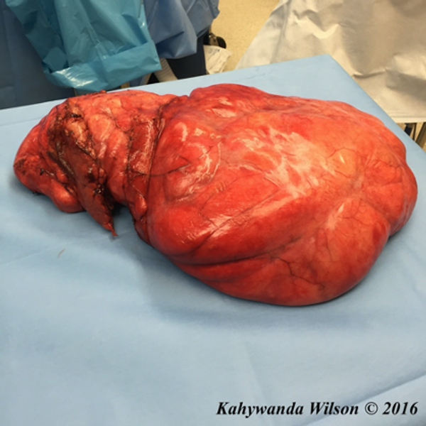 It turned out I had liposarcoma, a rare type of cancer that occurs in the fat cells. They scheduled surgery that same week. The tumor was malignant, and everything it touched had to be removed. Wearing the waist trainer hadn't helped — it had pushed the whole mass up my left side. They had to take out my spleen and part of my pancreas and then reconstruct my colon. That tumor weighed 13.5 pounds, bigger than most pregnancies.