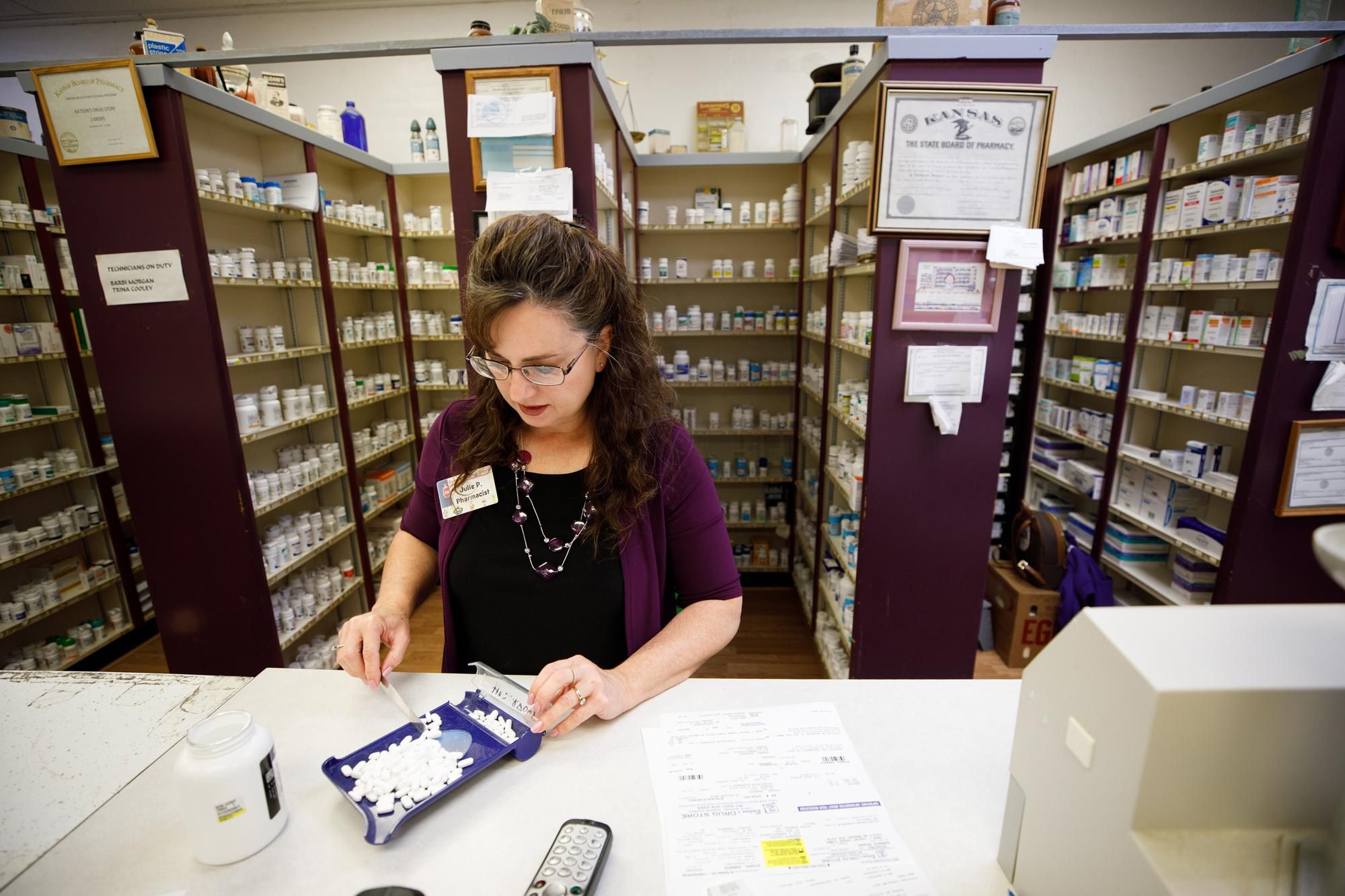 She worries about what will happen to her customers if she can't keep the pharmacy running. Elk County, with a population of 2,500, has no hospital and only a couple of doctors, so residents must travel more than an hour to Wichita for anything beyond primary care.