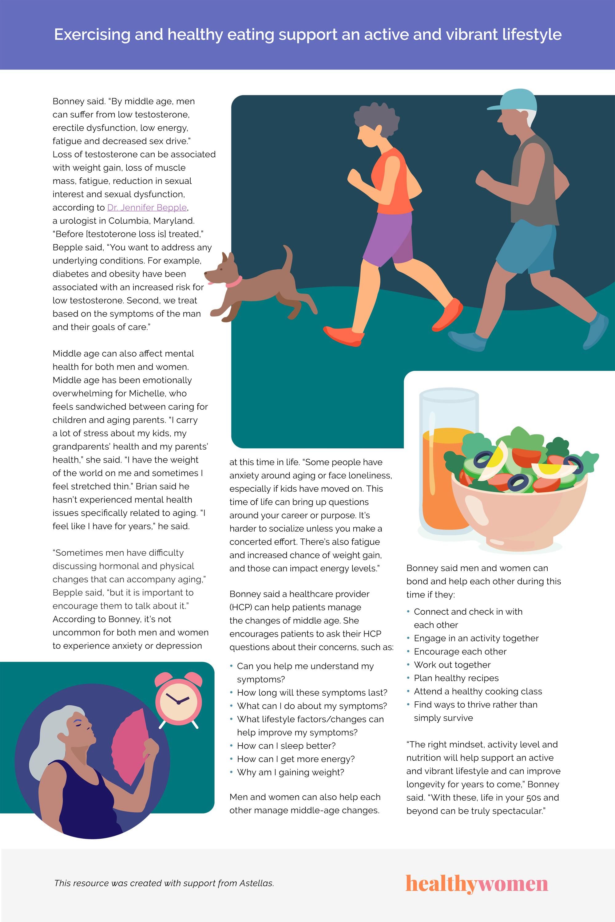 Bonney said a healthcare provider (HCP) can help patients manage the changes of middle age. She encourages patients to ask their HCP questions about their concerns, such as: